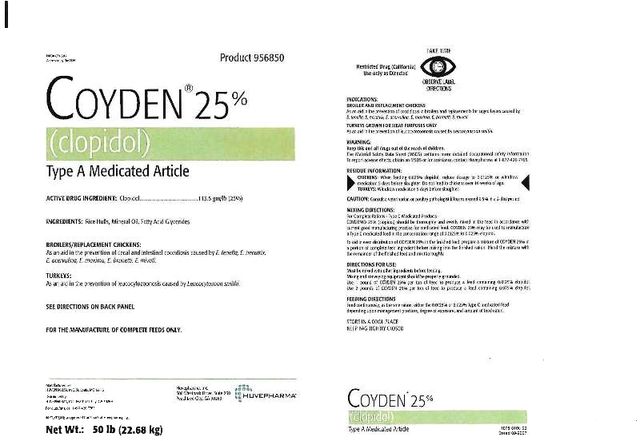 Use 1 pound of COYDEN 25% per ton of feed to produce a feed containing 0.0125% clopidol.