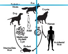 This parasite poses a serious public health problem because of the possibility for human involvement in the life cycle. If eggs shed by an infected canid are accidentally ingested, a highly pathogenic condition (Alveolar Hydatid Disease) results from development of the cyst stage in humans.