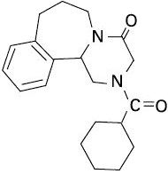 Epsiprantel is an anthelmintic that is active as a single dose against the common tapeworms of cats and dogs. Epsiprantel has a molecular weight of 326 and is chemically 2-(cyclohexyl-carbonyl)-4-oxo 1,2,3,4,6,7,8,12b-octahydropyrazino[2,1-a][2]benza-zepine. It is a stable white solid which is sparingly soluble in water. Its chemical structure is presented below.